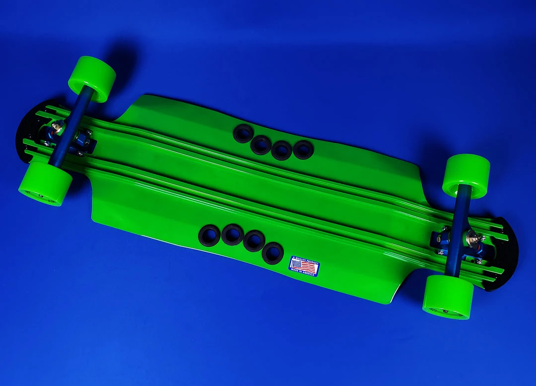 These boards are made from 100% recycled aluminum and plastics. Extremely durable and a great ride for beginners and pros.