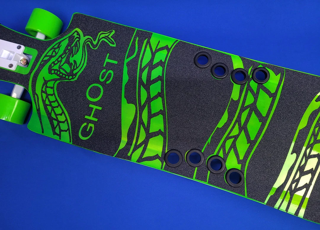 - Die Cut Grip Tape – Taking design to an efficient level, we cut custom designs out of our grip tape so that you don’t have sacrifice safety for style.