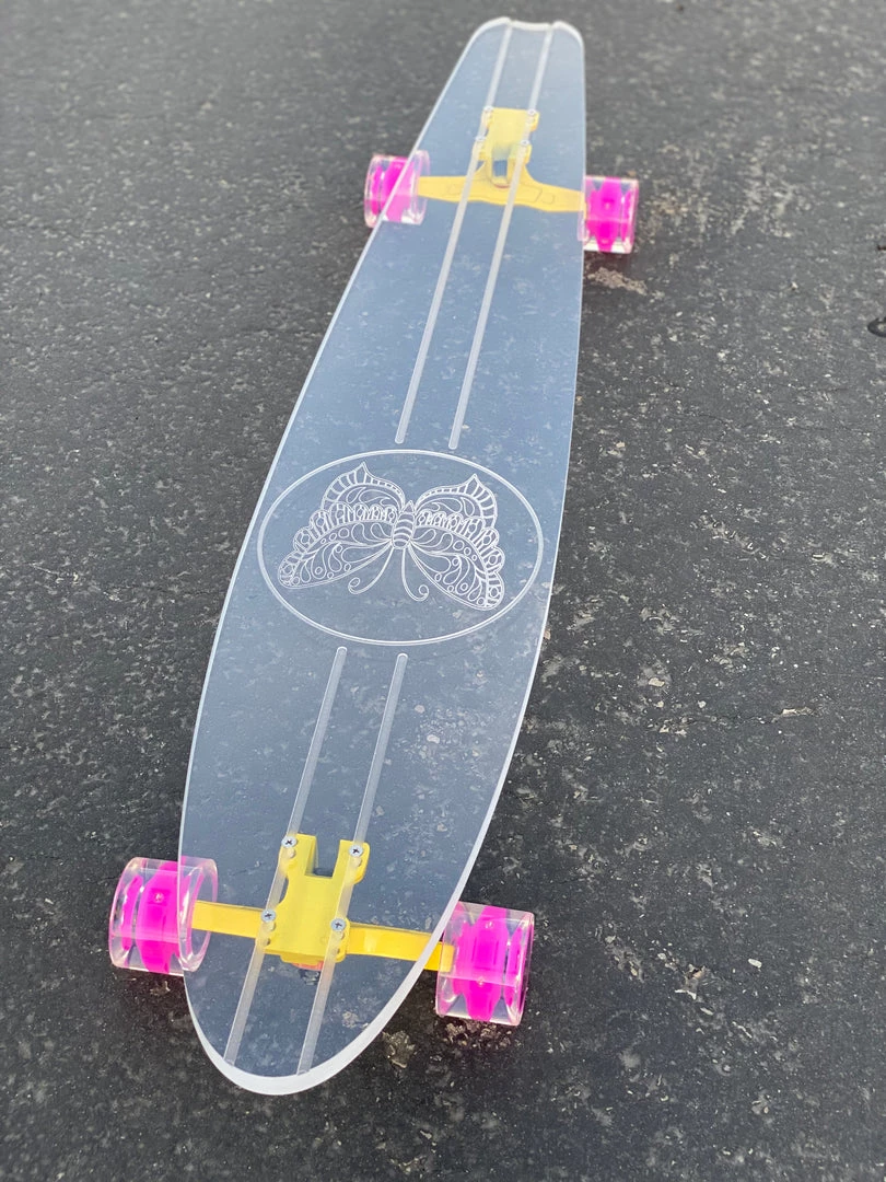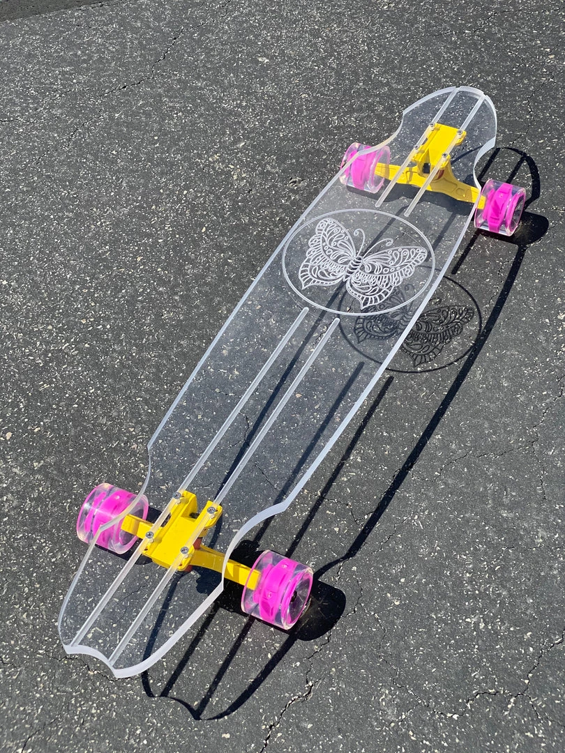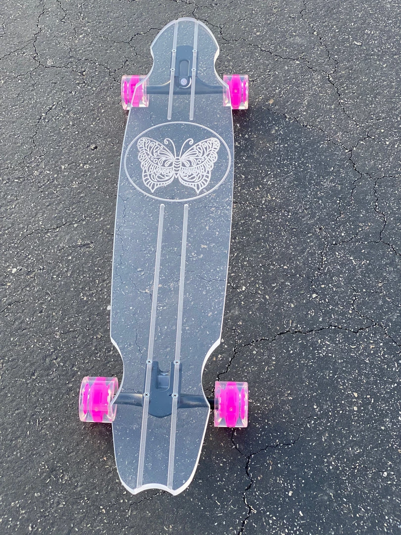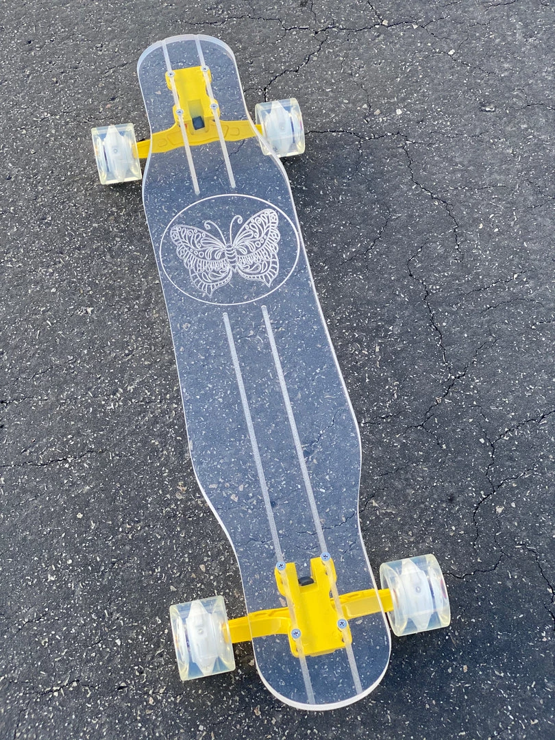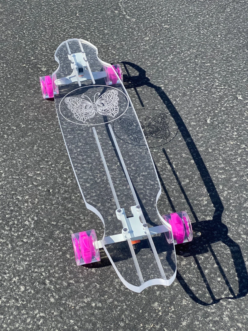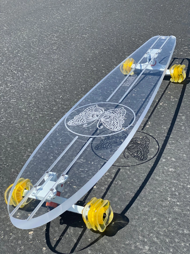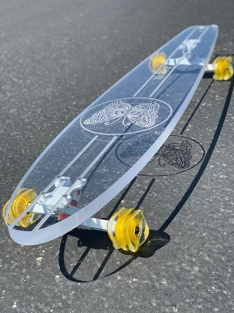 Innovation meets performance with our smooth riding, clear acrylic decks. We are changing the landscape of longboarding and hope you will join us! With over 50 designs and 5 deck shapes/sizes we have a board for every level of rider.