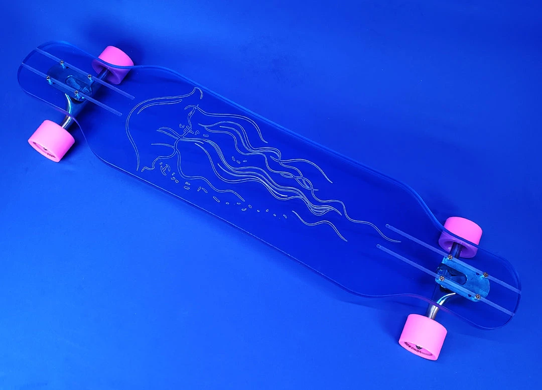 Innovation meets performance with our smooth riding, clear acrylic decks. We are changing the landscape of longboarding and hope you will join us! With over 50 designs and 5 deck shapes/sizes we have a board for every level of rider.