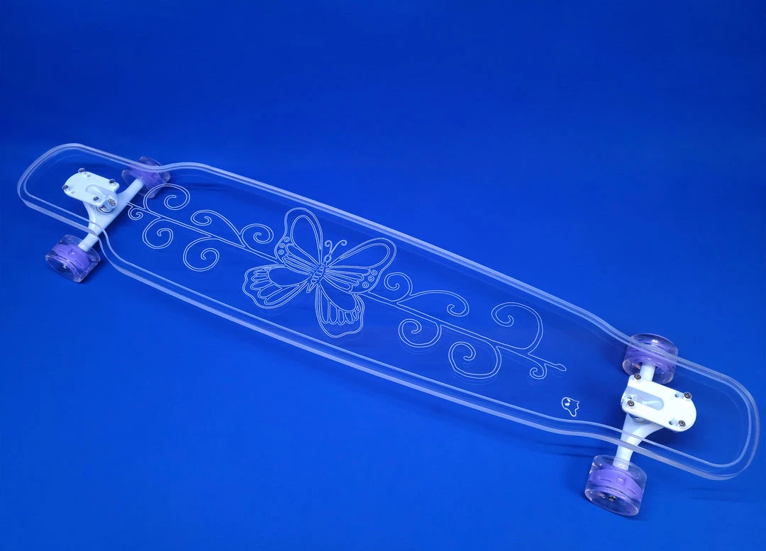 Innovation meets performance with our smooth riding, clear acrylic decks. We are changing the landscape of longboarding and hope you will join us! With over 50 designs and 5 deck shapes/sizes we have a board for every level of rider.