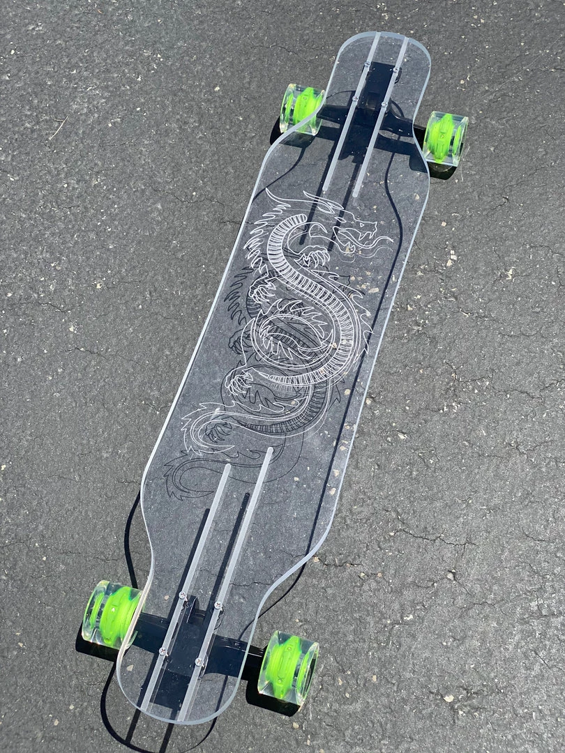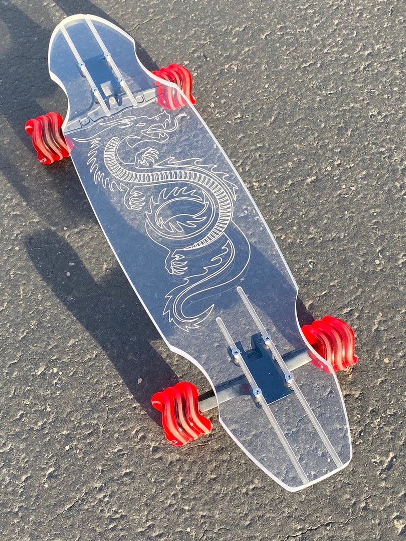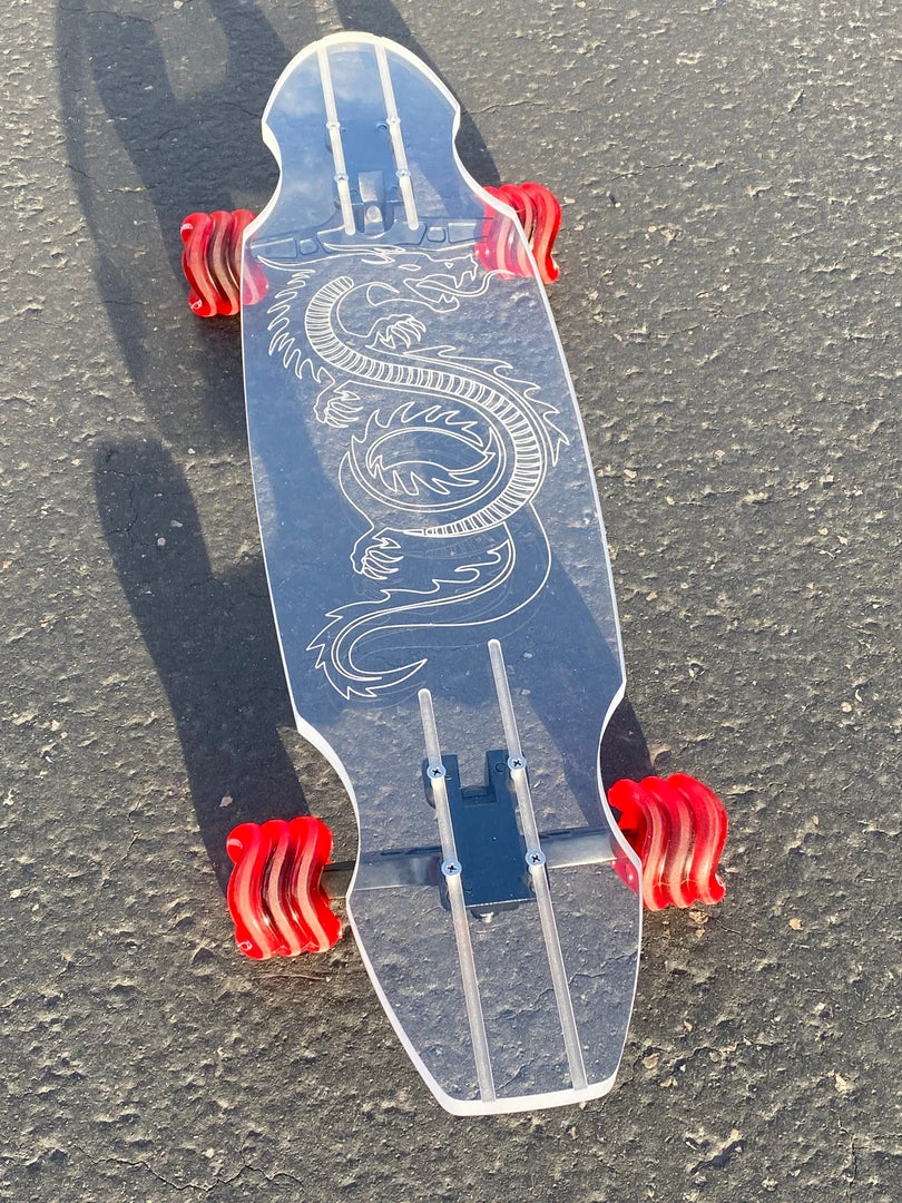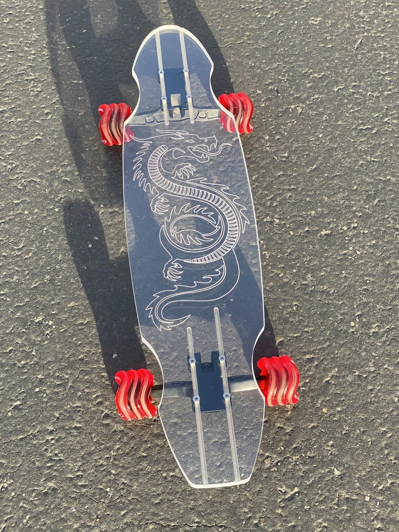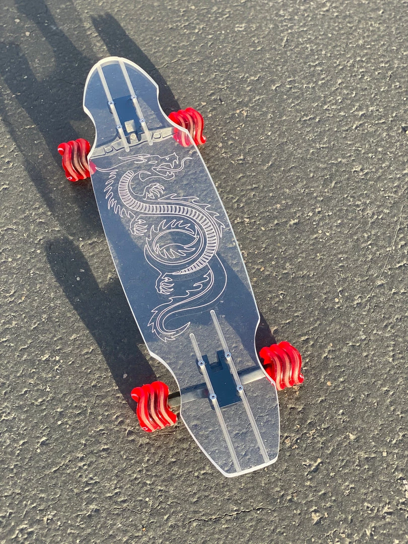Innovation meets performance with our smooth riding, clear acrylic decks. We are changing the landscape of longboarding and hope you will join us! With over 50 designs and 5 deck shapes/sizes we have a board for every level of rider.