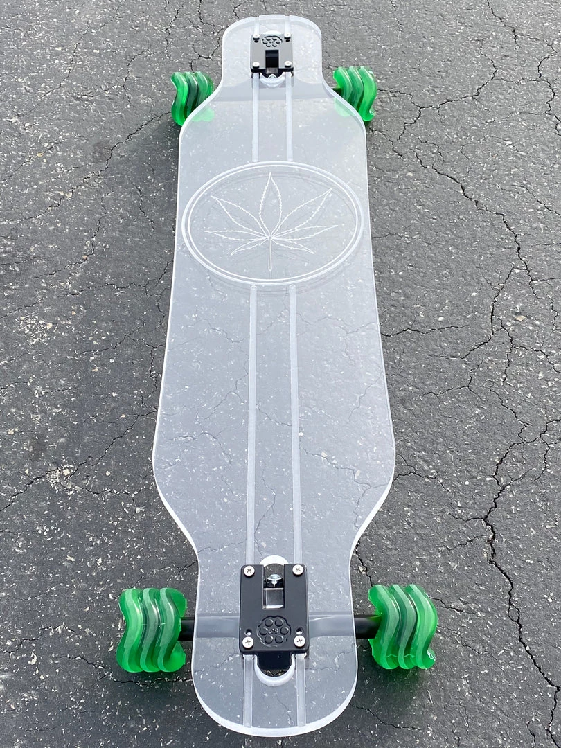 Innovation meets performance with our smooth riding, clear acrylic decks. We are changing the landscape of longboarding and hope you will join us! With over 50 designs and 5 deck shapes/sizes we have a board for every level of rider.