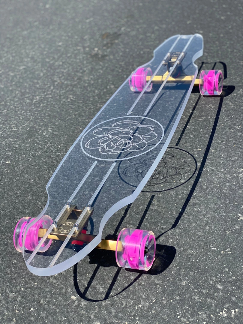 Innovation meets performance with our smooth riding, clear acrylic decks. We are changing the landscape of longboarding and hope you will join us! With over 50 designs and 5 deck shapes/sizes we have a board for every level of rider.