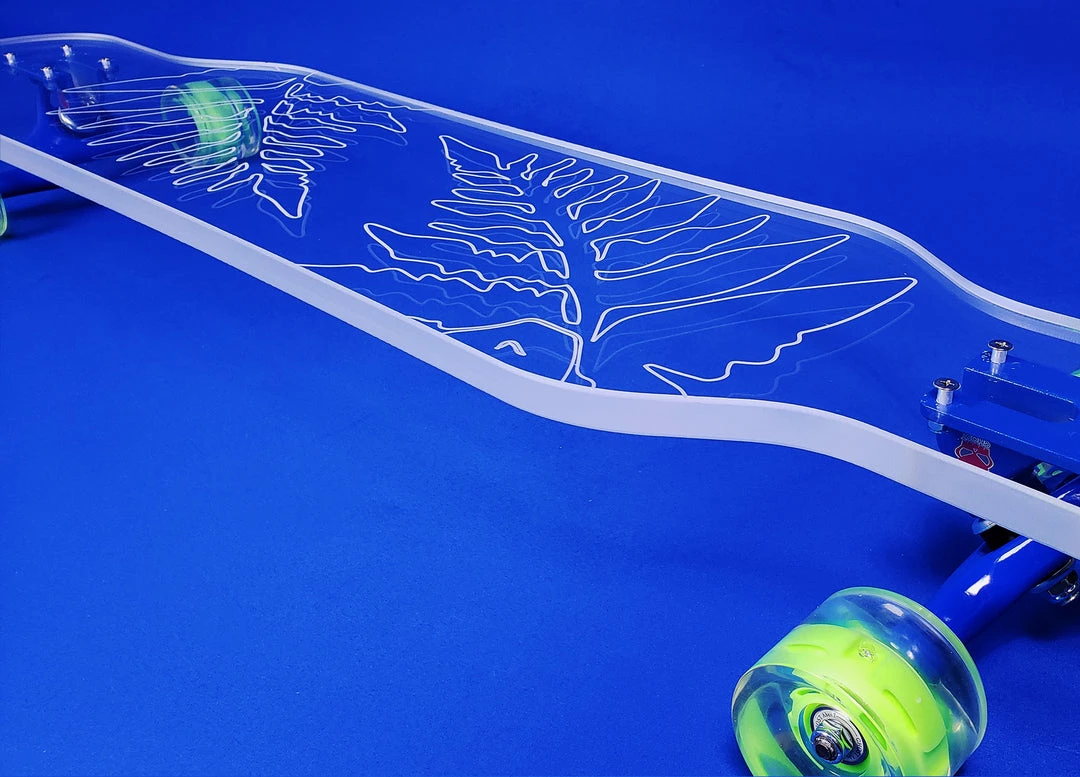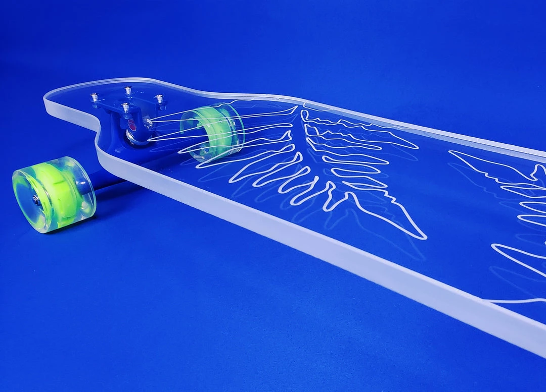 Innovation meets performance with our smooth riding, clear acrylic decks. We are changing the landscape of longboarding and hope you will join us! With over 50 designs and 5 deck shapes/sizes we have a board for every level of rider.