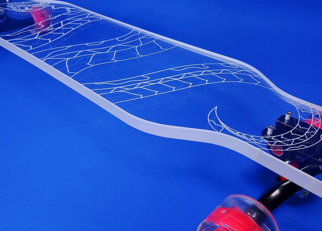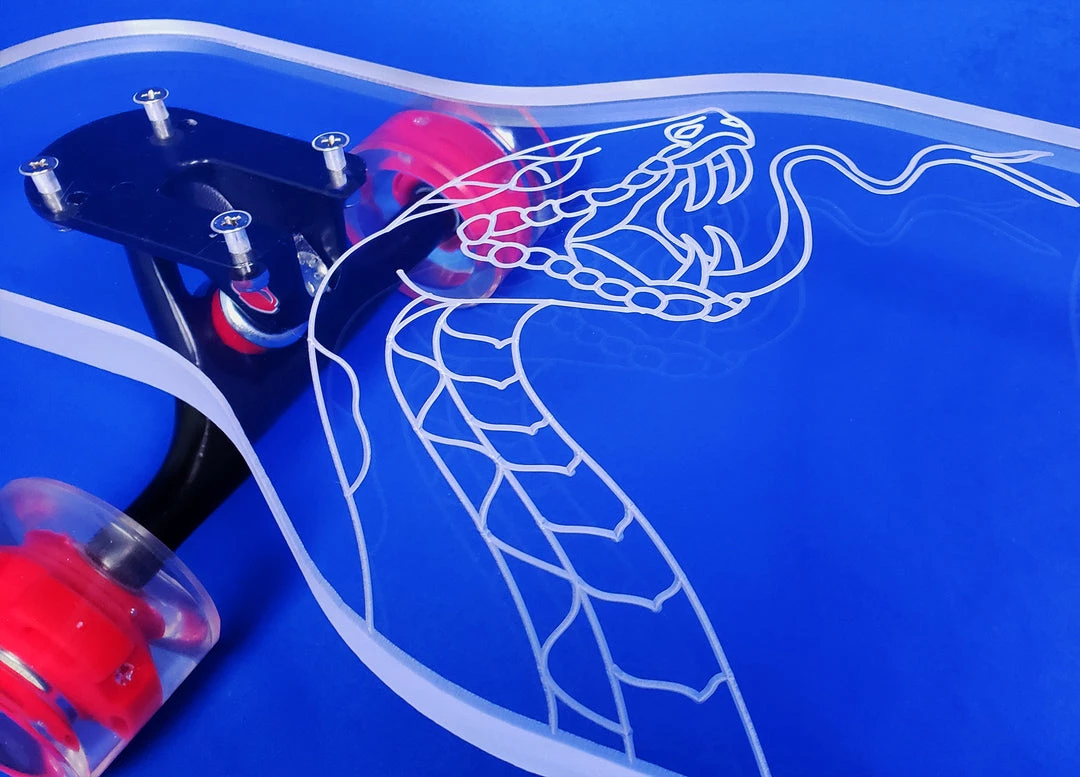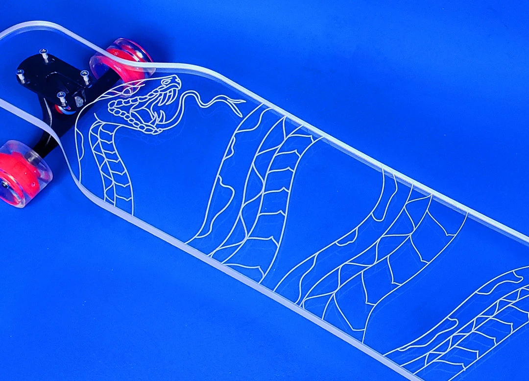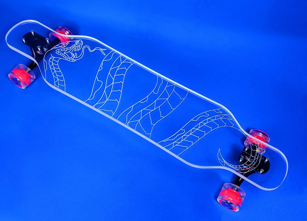 Innovation meets performance with our smooth riding, clear acrylic decks. We are changing the landscape of longboarding and hope you will join us! With over 50 designs and 5 deck shapes/sizes we have a board for every level of rider.