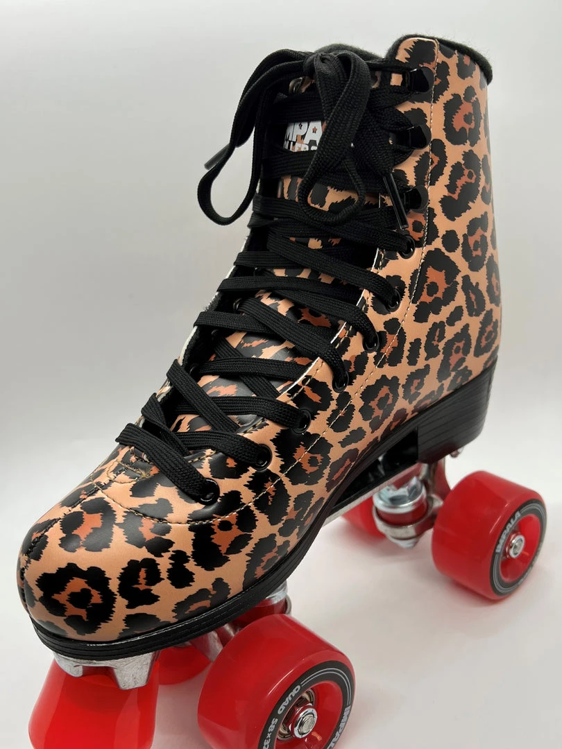 Impala Rollerskates Aqua Impala Quad Roller Skates cuz you’re drifting on a dream! These quad roller skates have PVC uppers, heels and soles, metal speed lace eyelets, aluminum alloy trucks and baseplates, 58mm 82a durometer nylon core urethane wheels, ABEC 7 bearings, and PU brake stoppers.