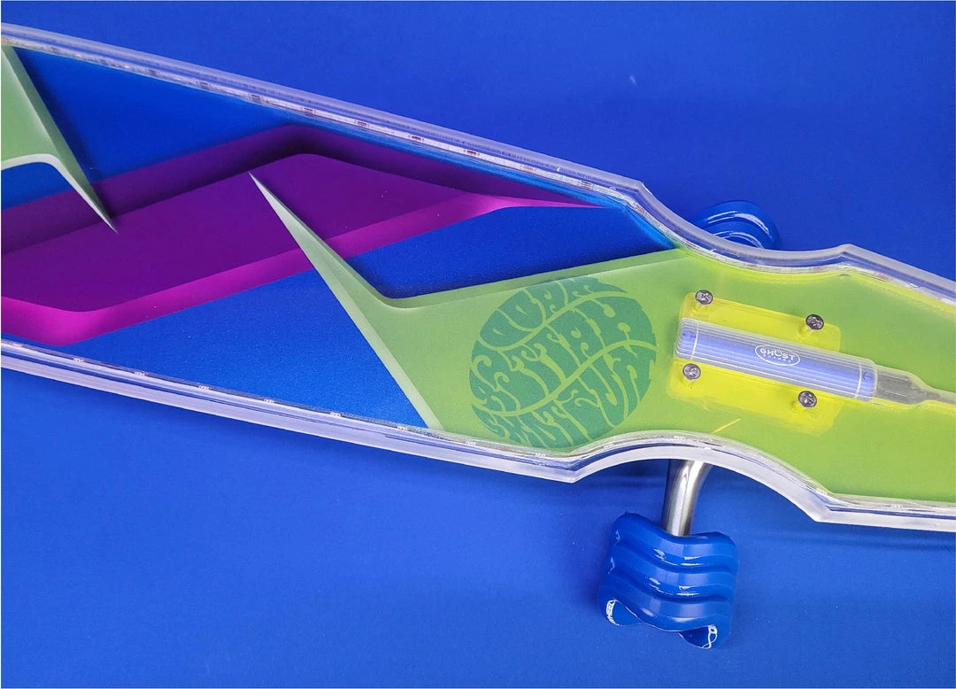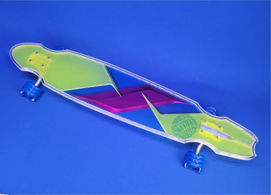 One of a kind custom hand painted longboard by Madd Hatter Kustomz.