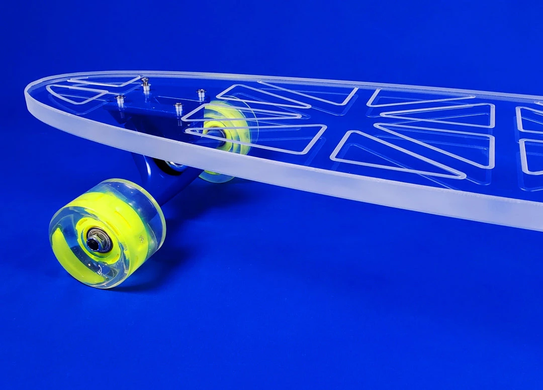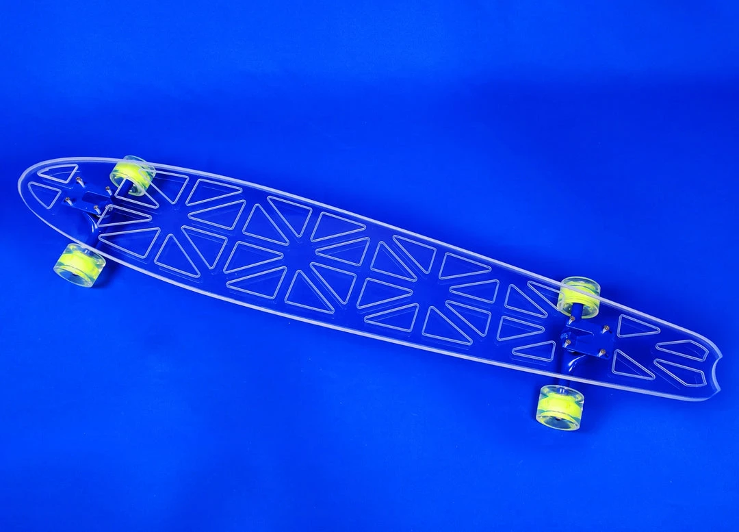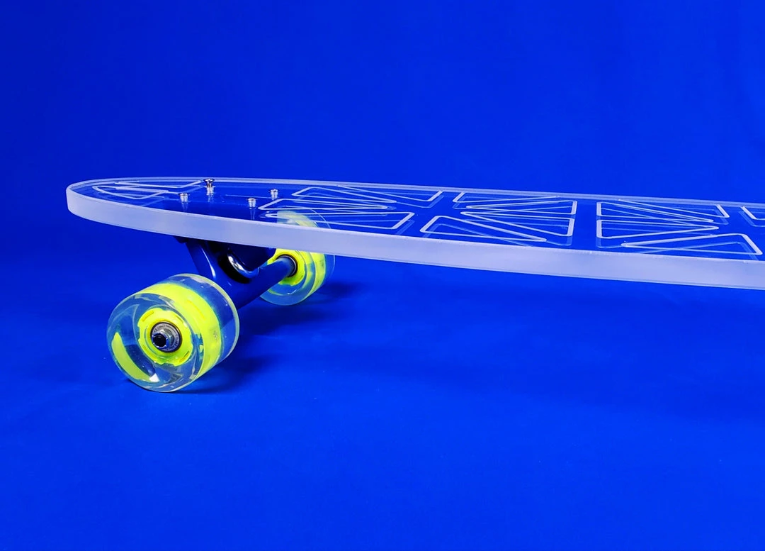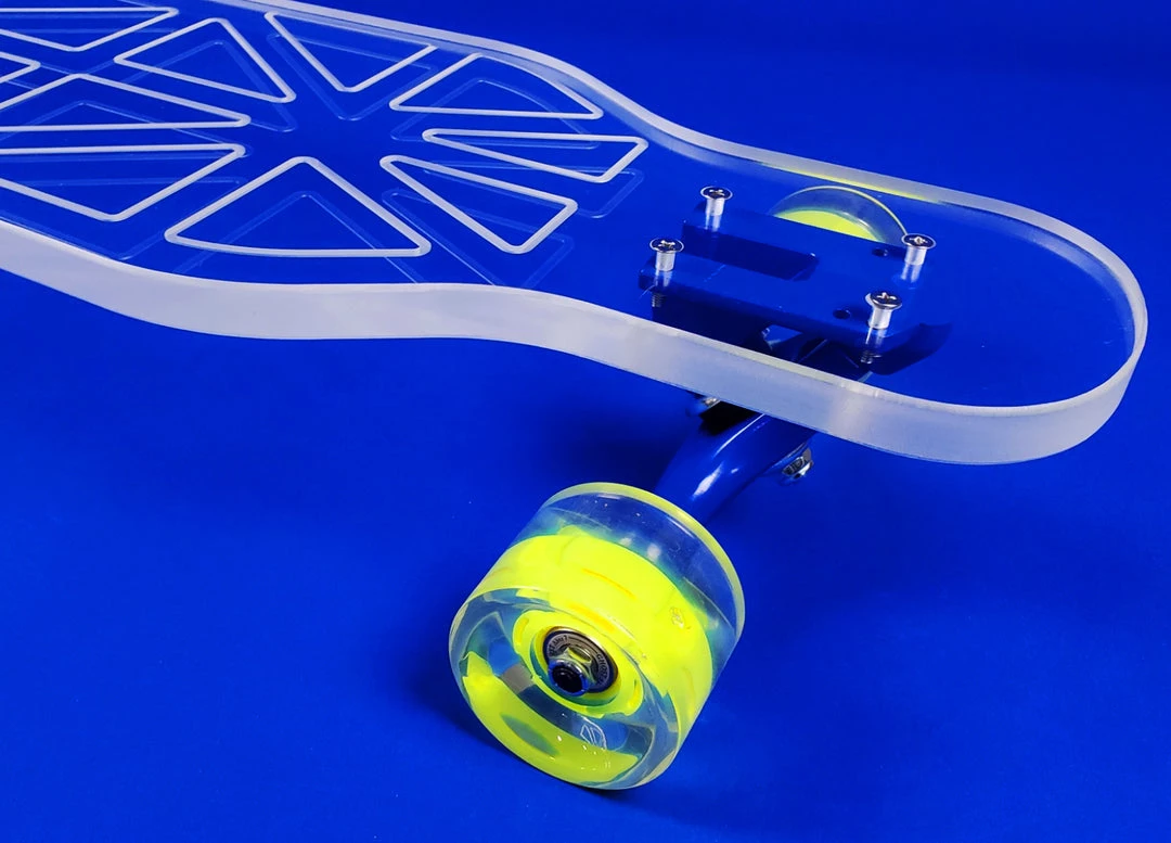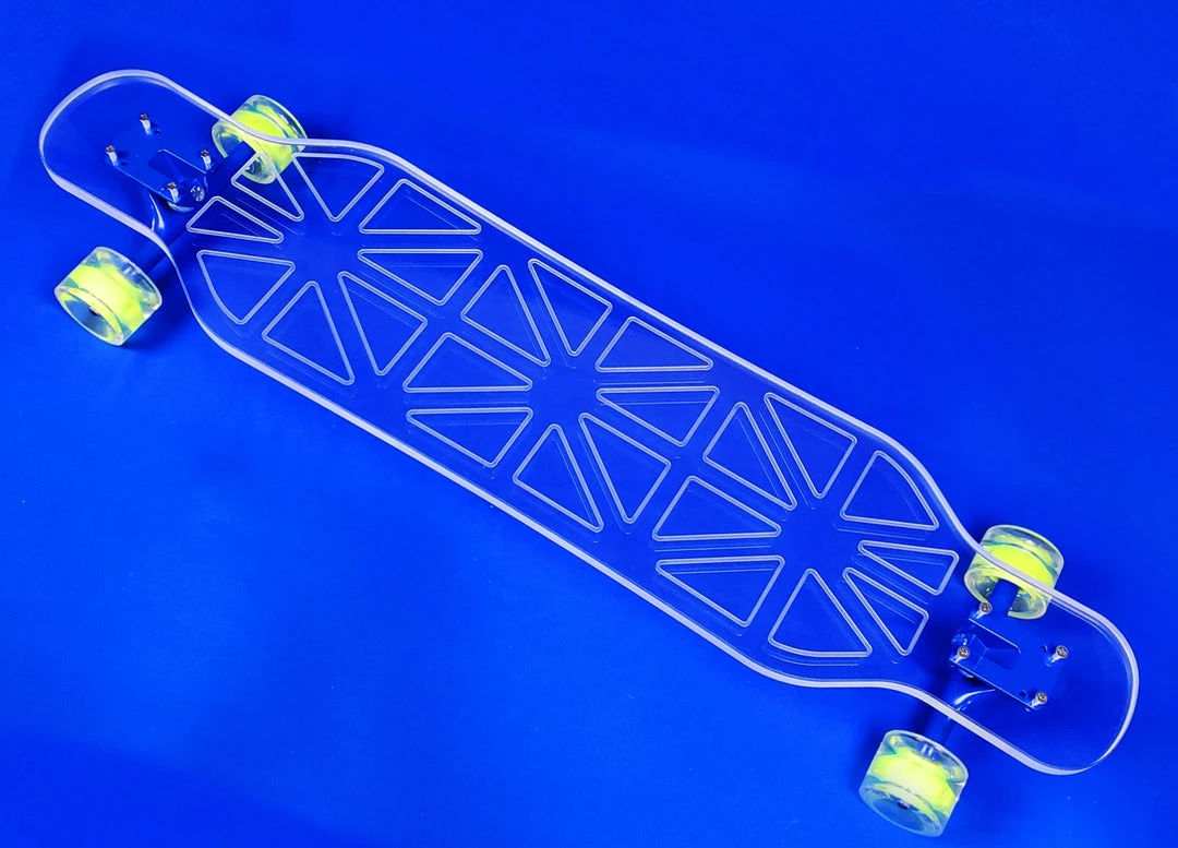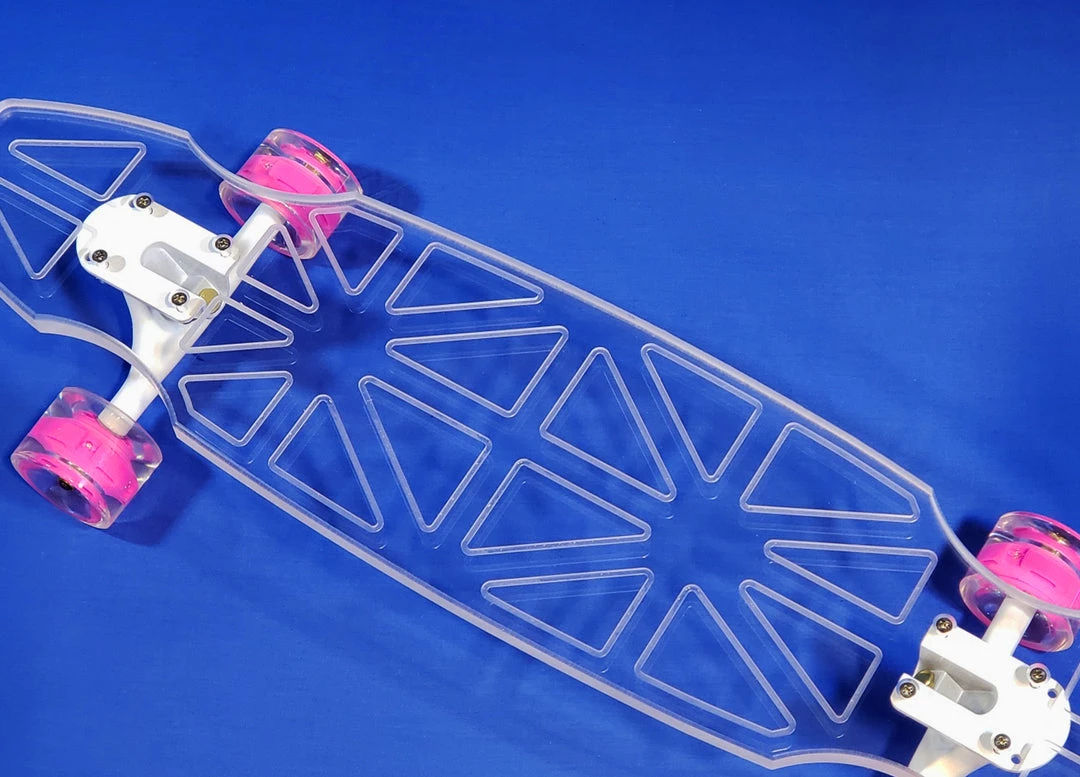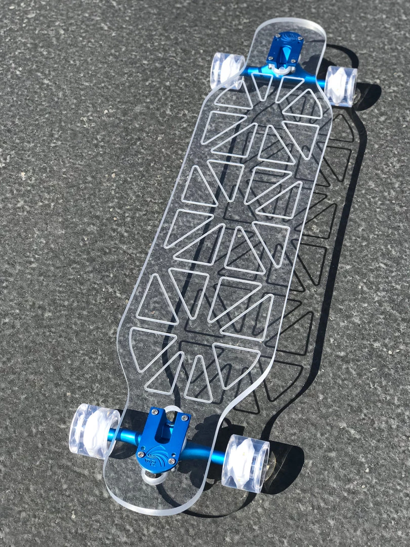 Innovation meets performance with our smooth riding, clear acrylic decks. We are changing the landscape of longboarding and hope you will join us! With over 50 designs and 5 deck shapes/sizes we have a board for every level of rider.
