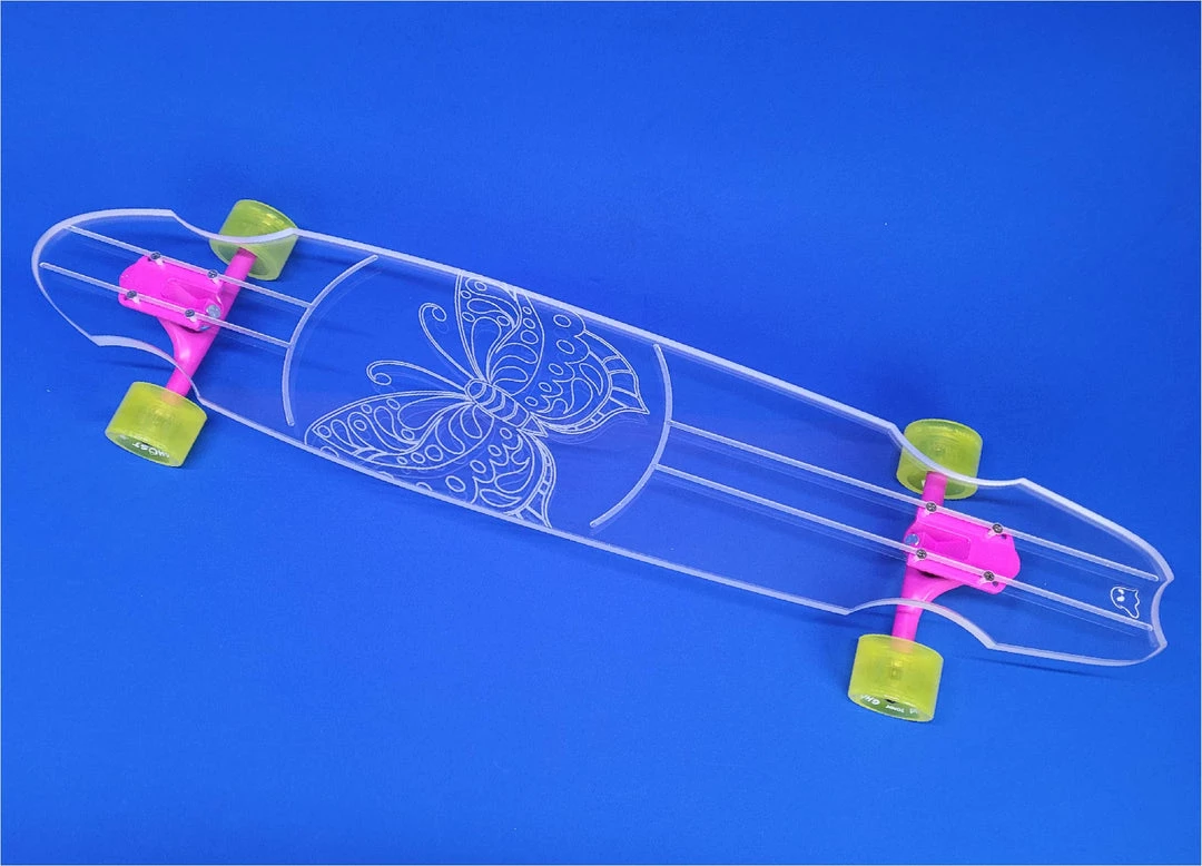 Innovation meets performance with our smooth riding, clear acrylic decks. We are changing the landscape of longboarding and hope you will join us! With over 50 designs and 5 deck shapes/sizes we have a board for every level of rider.