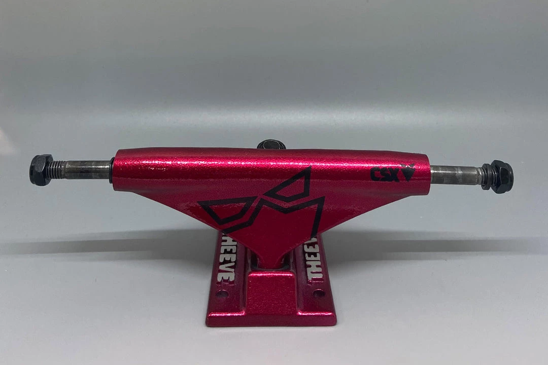 CSX model features classic cast hanger and baseplate, non-slip Cro-Molly axle, Grade 8 steel hollow kingpin, and Bones Hardcore bushings. This is a 55mm tall truck so get ready for a tasteful stance and Theeve’s signature True Turn Geometry.