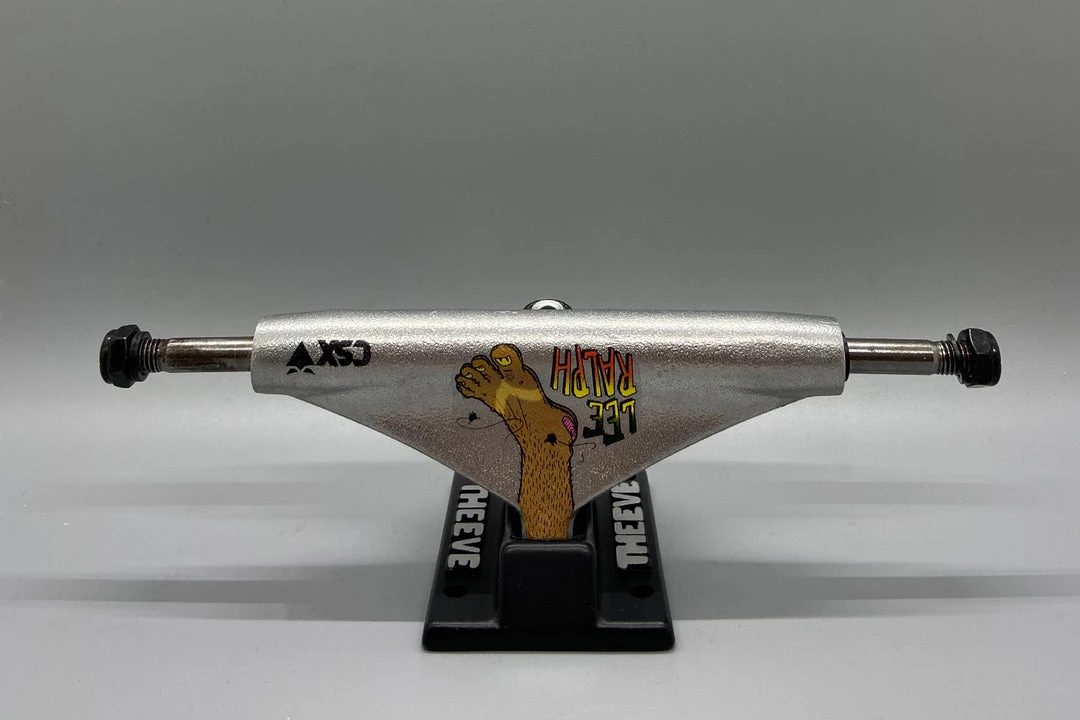 CSX model features classic cast hanger and baseplate, non-slip Cro-Molly axle, Grade 8 steel hollow kingpin, and Bones Hardcore bushings. This is a 55mm tall truck so get ready for a tasteful stance and Theeve’s signature True Turn Geometry.