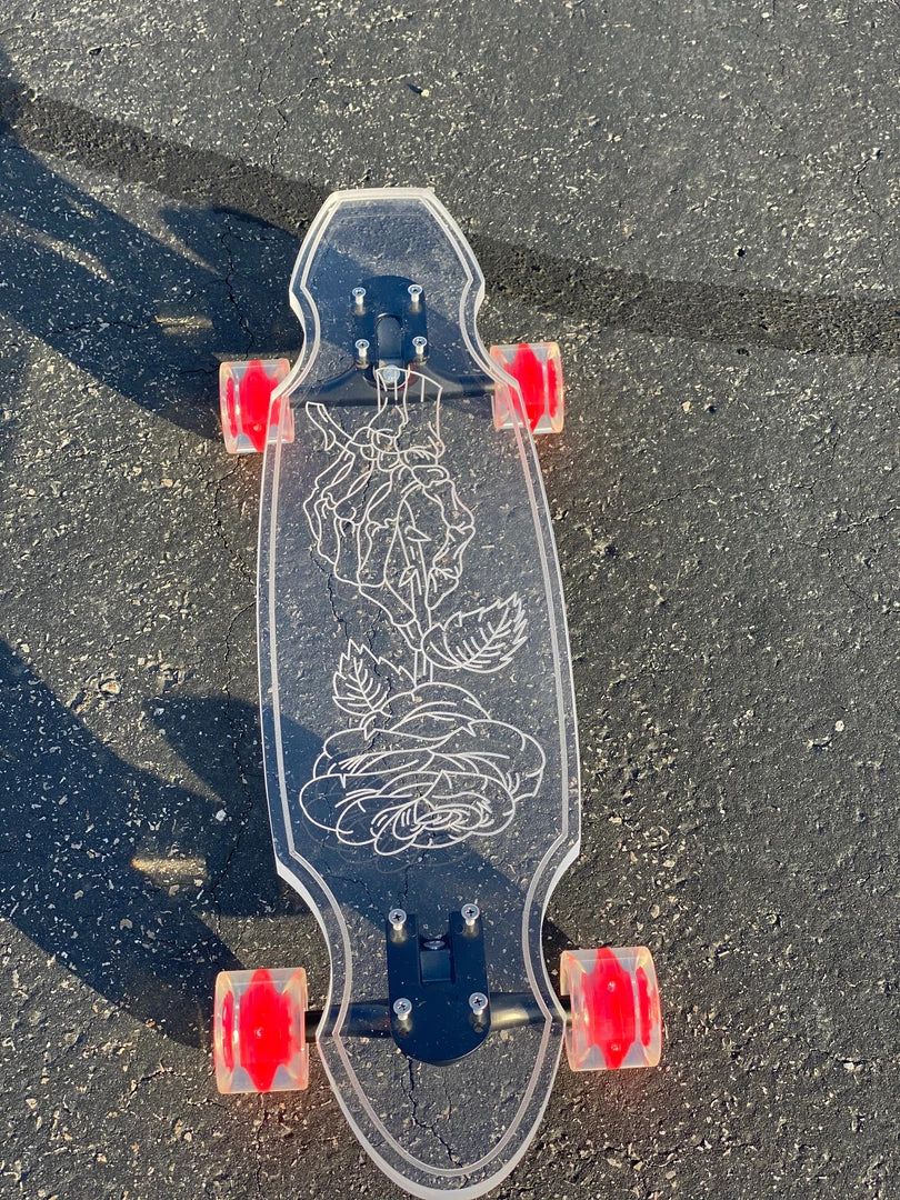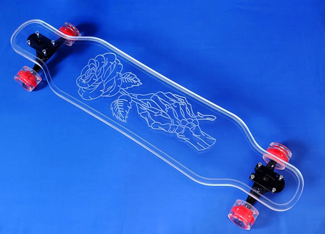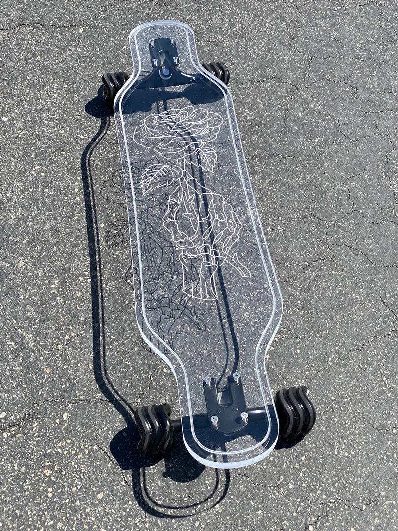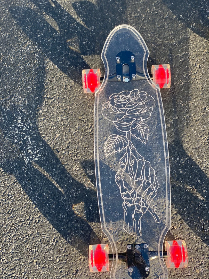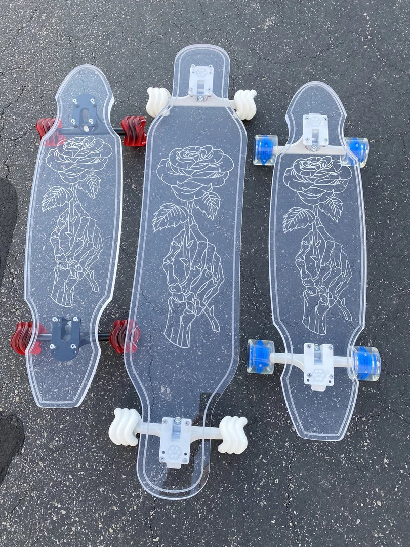 Innovation meets performance with our smooth riding, clear acrylic decks. We are changing the landscape of longboarding and hope you will join us! With over 50 designs and 5 deck shapes/sizes we have a board for every level of rider.