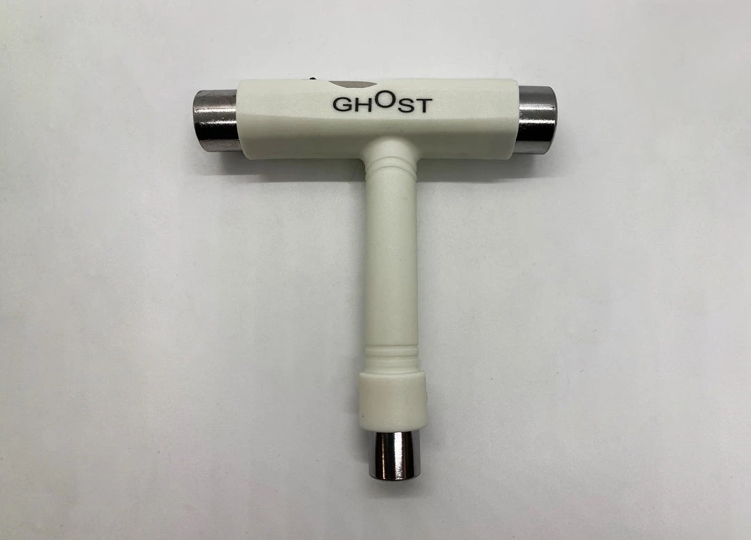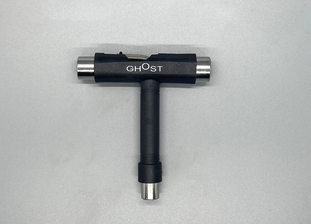 All-in-one skateboard tool with 9/16, 3/8, and 1/2″ sockets. Removable slide out Allen and Phillips head screwdriver.