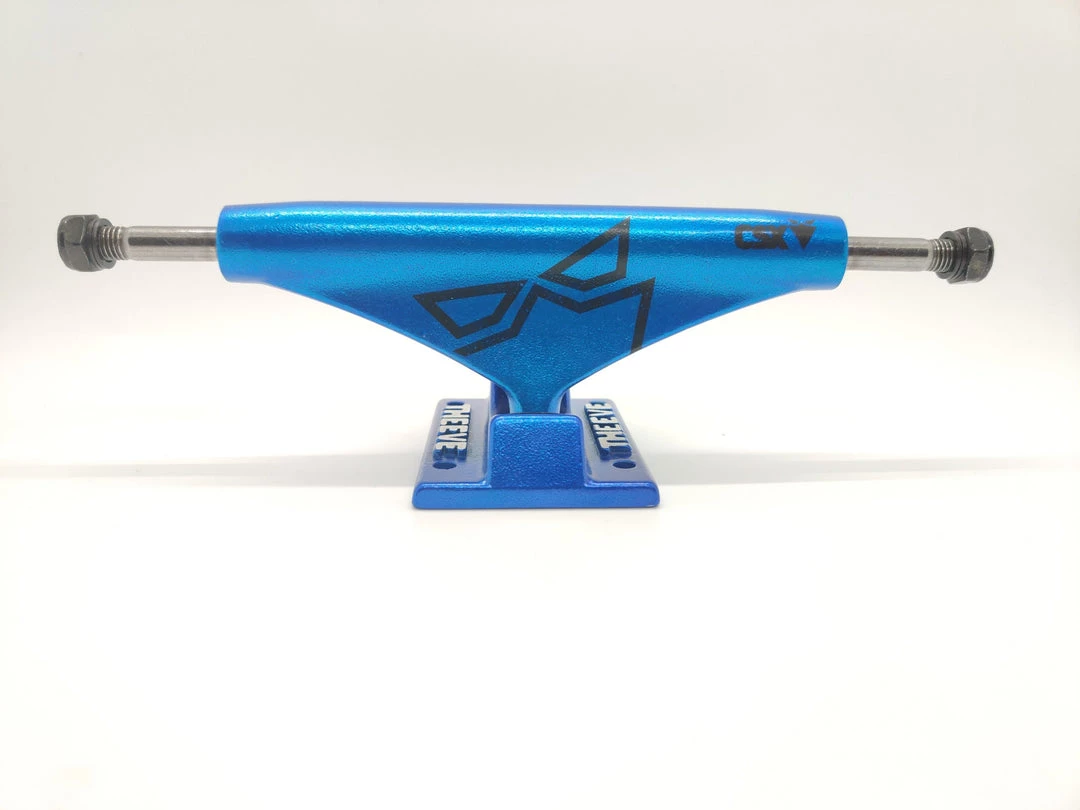 CSX model features classic cast hanger and baseplate, non-slip Cro-Molly axle, Grade 8 steel hollow kingpin, and Bones Hardcore bushings. This is a 55mm tall truck so get ready for a tasteful stance and Theeve’s signature True Turn Geometry.