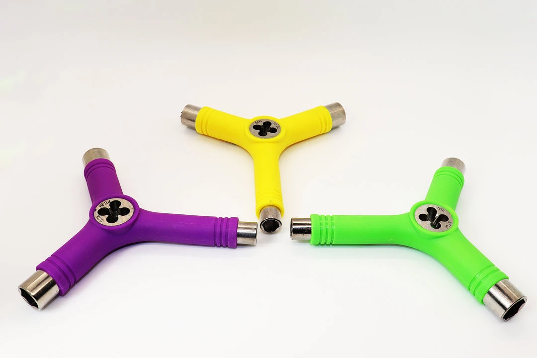 Functional Y skate tool has 3 type hexagon sockets and it is equipped with an Allen key with cross screwdriver that meets everything you need. The 3/8″ socket is used for hardware, the 1/2″ socket for wheels and 9/16″ socket for trucks.